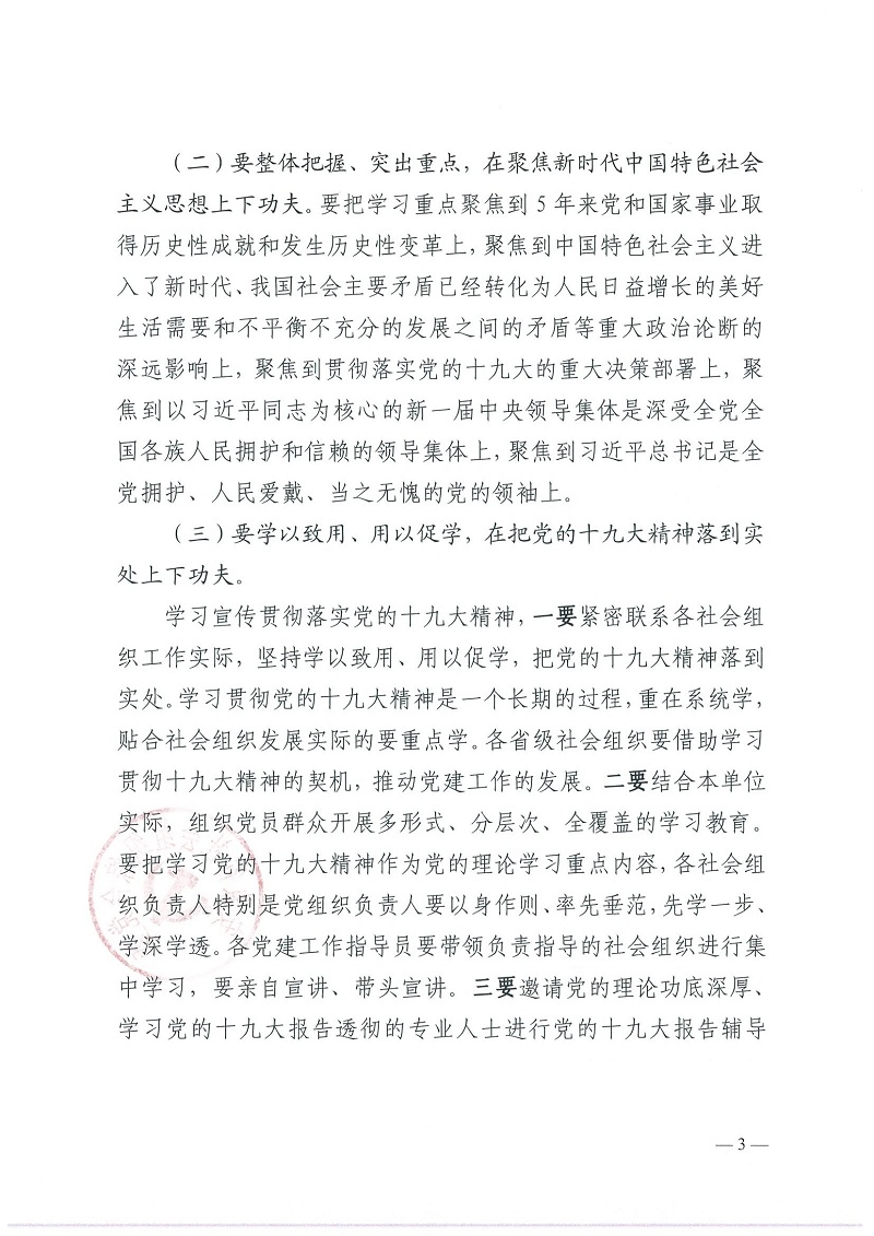 关于在省级社会组织中开展学习贯彻党的十九大精神的通知
