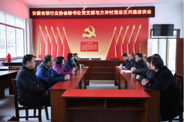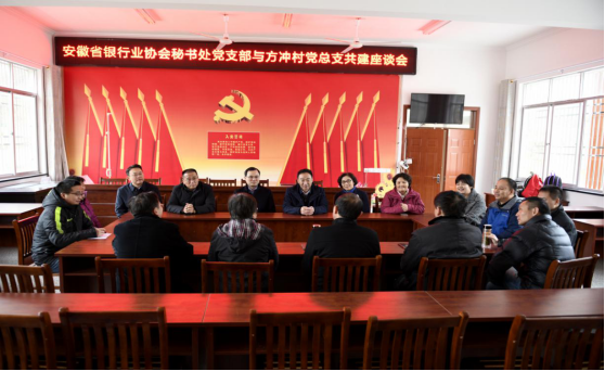 袁成刚同志一行看望慰问了安徽银保监局筹备组驻村工作队成员,与全体工作队员及槎水镇党委书记、方冲村党总支书记进行座谈,听取镇情、村情及扶贫情况介绍。袁成刚同志表示,社会组织参与脱贫攻坚是贯彻落实党的十九大精神的必然要求,也是履行社会责任的重要途径。社会组织是建设现代化五大发展美好安徽的重要力量,是动员组织社会力量参与脱贫攻坚的重要载体,党建促扶贫、党建促进业务。社会组织要建立长效机制,更好发挥扶贫力量,投入到美好乡村建设中去。刘加旺同志表示,安徽省银行业协会作为安徽银行业的自律组织,一直心系扶贫攻坚,践行社会责任。此次与方冲村开展党建共建扶贫活动,是切实发挥5A级先进行业自律组织的先锋引领作用,下一步安徽省银行业协会将继续引领各会员单位将社会责任管理融入银行业务经营管理之中,践行社会责任,推进“负责任”的金融发展。