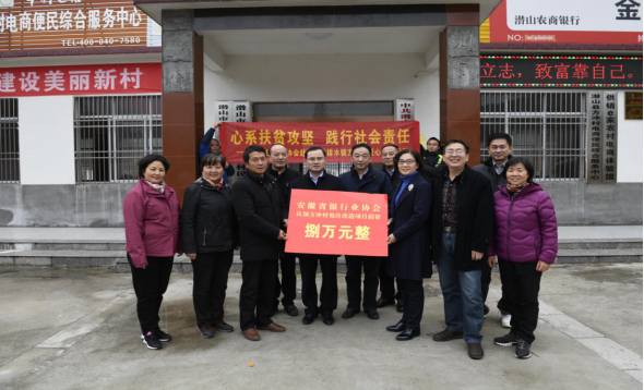 12月5日,安徽银保监局筹备组成员袁成刚、工会办负责人宣金华,安徽省银行业协会会长、农业银行安徽省分行行长刘加旺,专职副会长陈学军,秘书处党支部书记陆琳、安庆市农行、潜山市农行有关负责人、秘书处党员同志等一行十五人,深入扶贫一线,前往潜山市槎水镇方冲村开展爱心捐款活动,代表全体会员单位,为特困户危房改造捐款8万元。同时协会秘书处党支部与该村党总支开展党建共建活动。