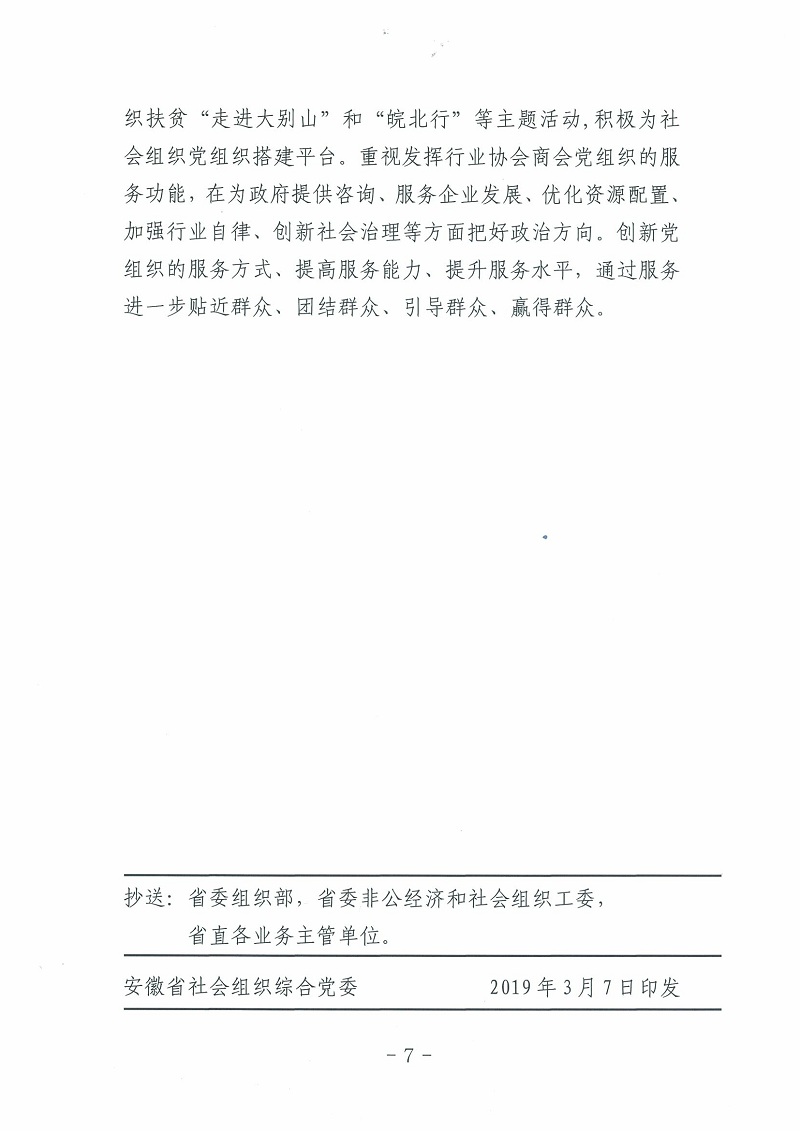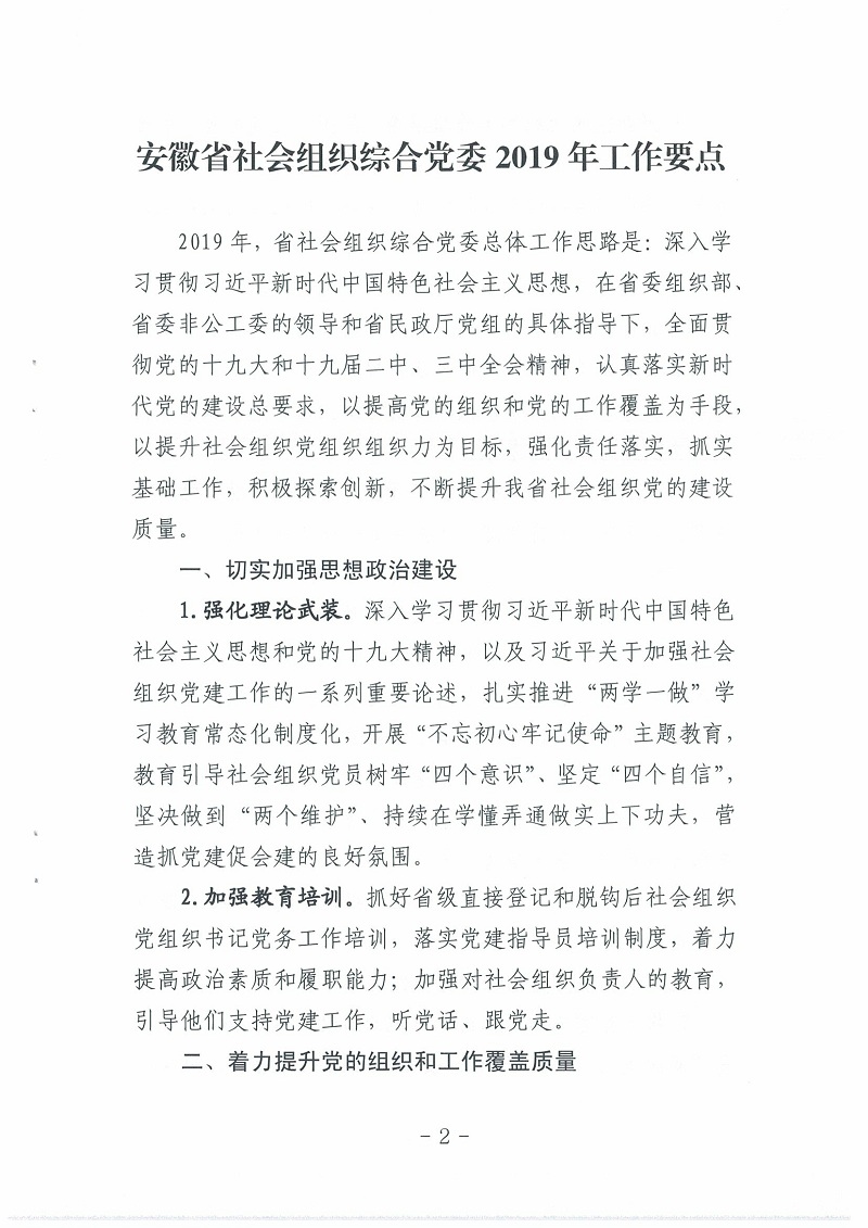 关于印发《安徽省社会组织综合党委2019年工作要点》的通知