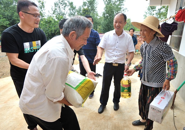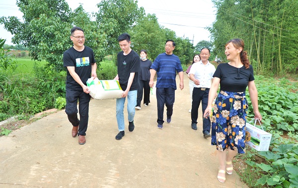 6月19日,省餐饮行业协会携蒙牛、金龙鱼、北大荒、先徽等会员企业代表,一行12人走进望江县高士镇毛安村,开展“百社进百村”扶贫活动。省餐协秘书处现场捐款14700元;会员企业捐赠米、面、油、奶等,价值6065元。扶贫组一行走村串户,调研扶贫对象,重点与吴四结、王胜兵两贫困户,开展了一对一扶贫。