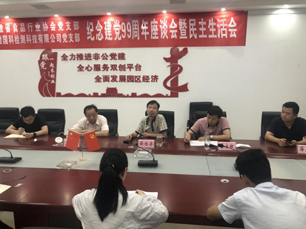 6月29日下午,省食品行业协会党支部与安徽国科检测科技有限公司党支部,联合开展纪念建党99周年座谈会暨民主生活会。