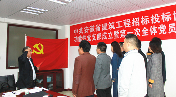 2020年11月21日上午10时,中共安徽省建筑工程招标投协会功能性党支部成立暨第一次全体党员大会在合普项目管理咨询集团有限公司会议室召开。本次大会应到党员10人,实到9人,符合党章规定。会议经全体党员举手表决,通过了《安徽省建筑工程招标投标协会第一届功能性党支部委员会选举方案》(草案)和《安徽省建筑工程招标投标协会成立功能性党支部工作方案》(草案);以无记名方式选举产生协会第一届支部委员会委员,何传波、袁栋文、张珏、施杰4人当选。随后召开的党支部委员会第一次会议明确党内工作分工,确定何传波同志任书记,袁栋文同志任副书记,张珏同志任宣传委员,施杰同志任纪律检查委员。