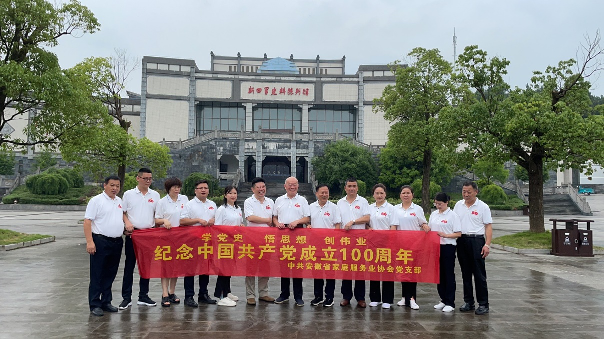 为庆祝中国共产党建党100周年,持续开展党史学习教育活动,深入学习党史、新中国史、改革开放史、社会主义发展史“四史”, 2021年6月25日,安徽省家庭服务业协会党支部联合合肥市家政服务业协会,组织安徽省家庭服务业协会党支部党员、入党积极分子及市家协优秀党员代表等一行15人,前往宣城开展学习教育活动。受安徽省家庭服务业协会林清会长委托,顾问、创会秘书长钱永生,常务副会长、行业工会主席张立发,安徽省家庭服务业协会党支部组织宣传委员江芳参加。