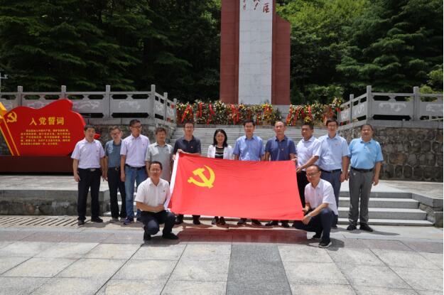 在初心与使命展陈馆,讲解员细致引导下,大家认真参观了立志救国的初心使命,不负时代的责任担当,百折不挠的斗争精神,至死不渝的绝对忠诚,坚如磐石的理想信念,清正廉洁的优良作风等六个单元,通过一幅幅生动的照片,一件件珍贵的实物、一段段详实的文字,深切感知了王步文同志短暂而不平凡的一生,深刻体会了老一辈无产阶级革命家无私无畏、百折不挠的革命精神和为民族解放甘洒热血、奉献毕生的伟大情怀。在松涛阵阵、小丘环抱的王步文故居,当大家聆听王步文“当用则用,家里少用”的故事时,无不为之感动。在红二十八军大别山烈士纪念碑前,全体党员干部面向党旗、举起右拳,庄严地重温了入党誓词,坚定了初心信念。