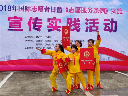 为深入学习贯彻十九大关于志愿服务的决策部署,进一步弘扬志愿服务精神,传播志愿服务理念,进一步掀起人人关心、支持、参与志愿服务活动新热潮,12月5日上午,黟县2018年国际志愿者日暨志愿服务条例实施一周年宣传实践活动在碧阳镇郭门社区志愿服务广场举行。