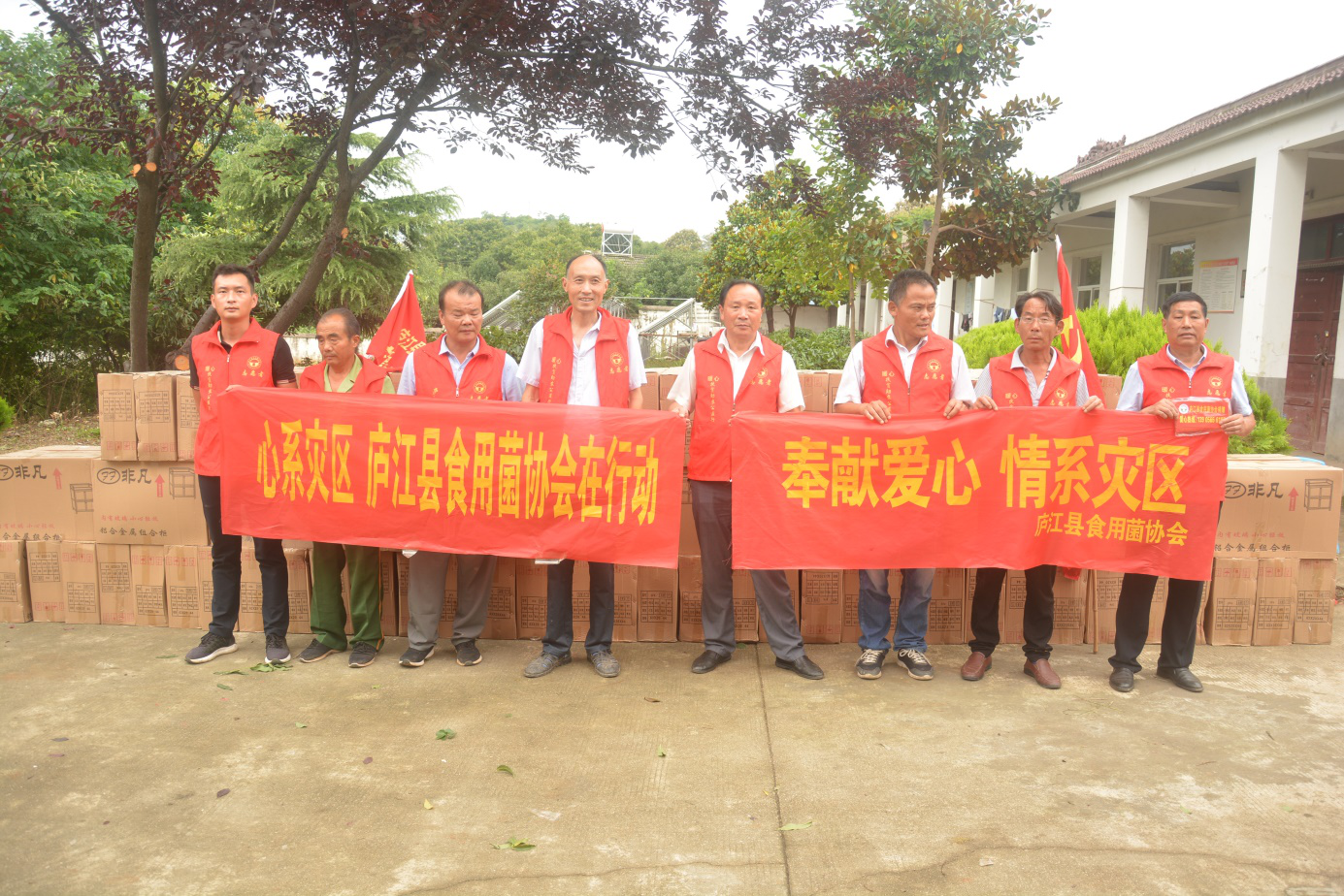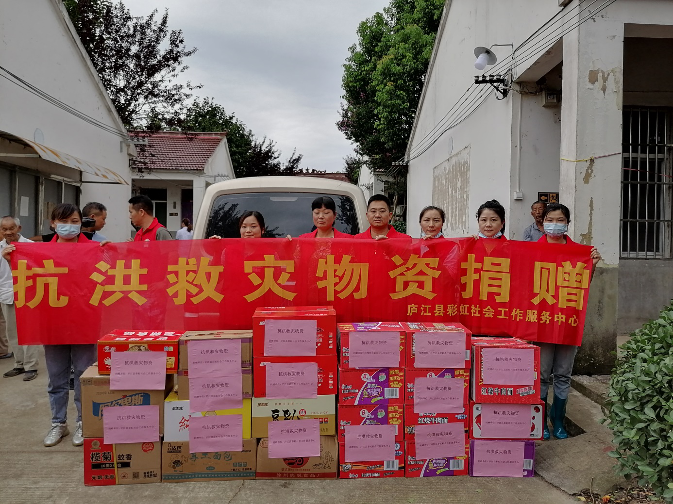 县民政局社会组织管理局局长陈兵了解到安置点蚊虫肆虐,联系当地社会组织到安置点慰问救助。7月24日,县食用菌协会为安置点的老人购买92个简易柜现场组装,让老人住得更舒心,并捐赠一车蘑菇改善老人伙食。县彩虹社会工作服务中心为安置点老人捐赠方便面、面包、蚊香、灭蚊枪等应急救灾物资。同时为受灾群众提供健康义诊,理发等志愿服务,帮助受灾群众缓解心理压力,树立他们战胜洪灾重建家园的信心与决心。7月26日上午,庐江微创医院和安徽海鸿公益会代表在县民政局副局长钟礼青、县民政局社会组织管理局局长陈兵的组织和带领下,共同前往冶父山中心敬老院和郭河镇三畈敬老院临时安置点,慰问洪水受灾被转移的同大镇敬老院和郭河镇南圩敬老院的老人们,为他们义诊并捐赠价值4万元的常备药品、生活用品等爱心物资。青扬社工服务社到郭河镇转移安置点慰问受灾群众,捐赠200件夏装上衣。