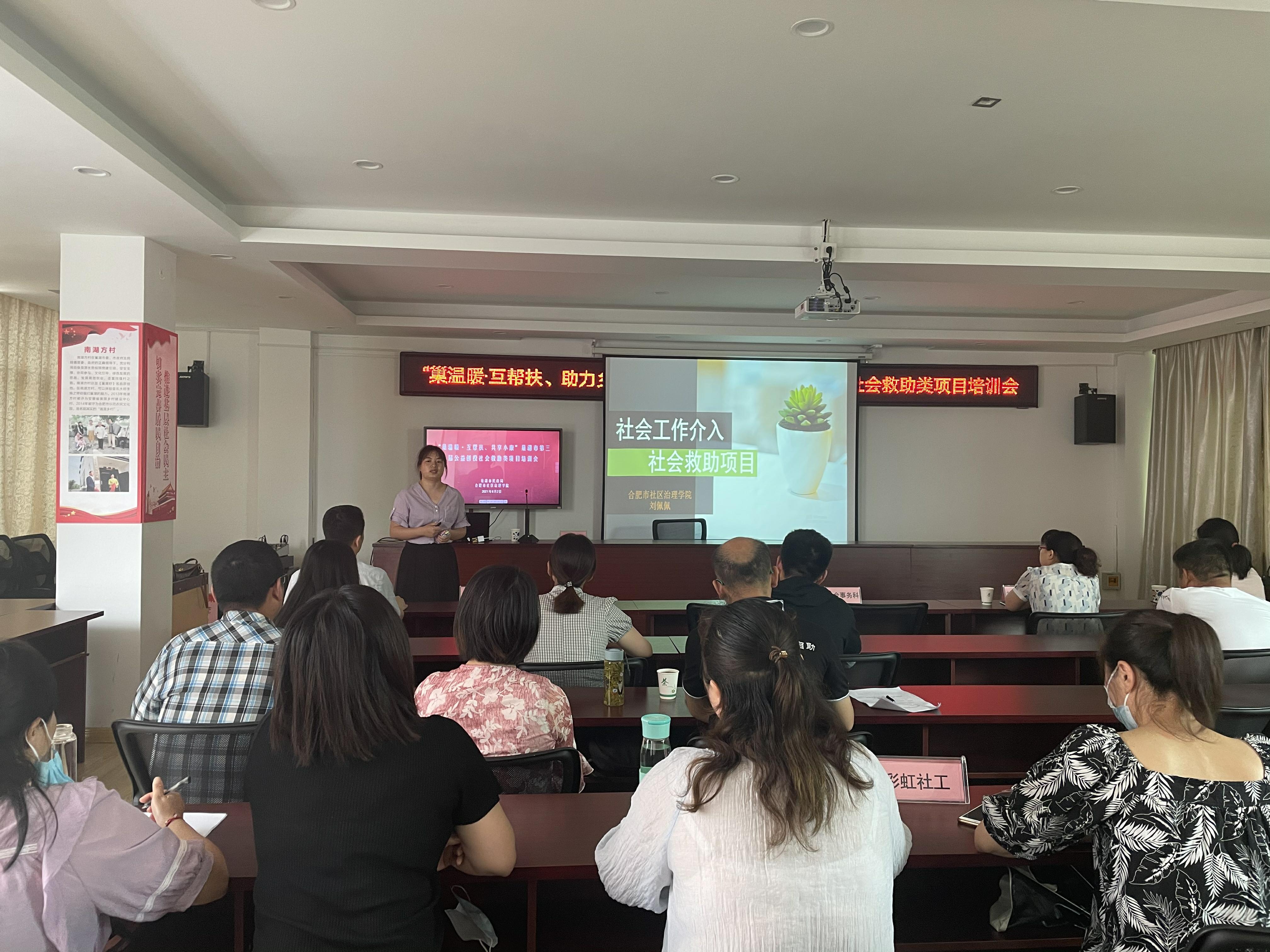 培训会邀请合肥市社区治理学院刘老师重点围绕社会工作与社会救助的关系、什么是“好”的社会工作服务项目、如何设计一个好的社会救助服务项目等主题进行授课。同时结合案例分享,向在场社工生动传授服务对象如何精准确定、实施计划如何制定;以及怎样更精准聚焦服务人群,瞄准服务对象需求、提供精准服务。