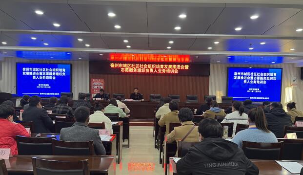 为更好地落实民政部、省民政厅关于加快培育发展社区社会组织工作的要求,11月26日,宿州市民政局召开城区社区社会组织培育发展推进会。市民政局社会组织管理局局长,区民政局分管负责同志,科室负责同志,11个街道的民政所负责同志及23家社工机构、慈善组织、志愿服务队参会。