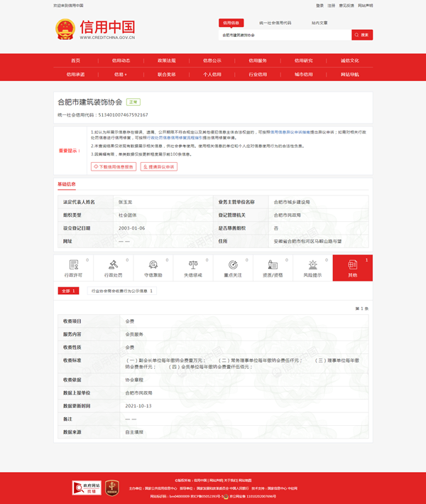 为引导社会组织建立健全诚信机制,提高社会组织的公信力,打造诚信民政、信用民政,合肥市民政局社会组织管理局认真贯彻落实社会信用体系建设等相关要求,积极采取相关行动,在全市范围内开展行业协会商会乱收费问题专项清理整治工作,并利用信用中国网站公示系统向社会公布。