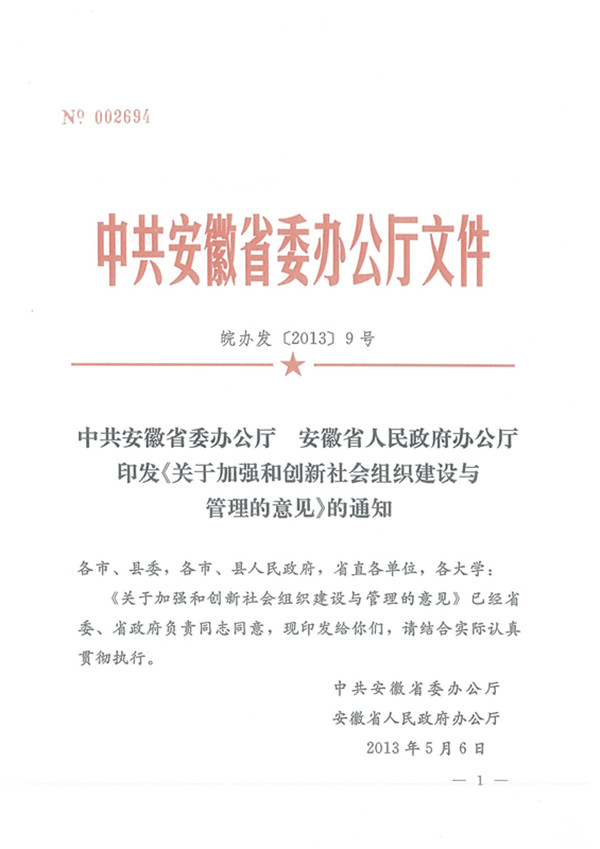 近日,中共安徽省委办公厅、安徽省人民政府办公厅印发了《关于加强和创新社会组织建设与管理的意见》,并就此发布通知,希望各单位结合实际认真贯彻执行。