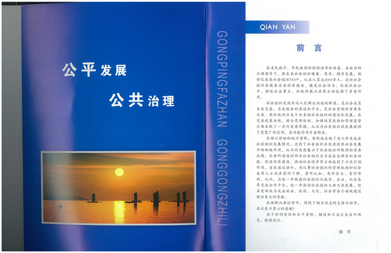 为了客观地反映近几年来肥东县社会组织的发展情况,总结社会组织在促进经济社会发展中的积极作用,从不同角度展示社会组织所取得的重要成绩。肥东县民政局编印发行了《肥东社会组织》