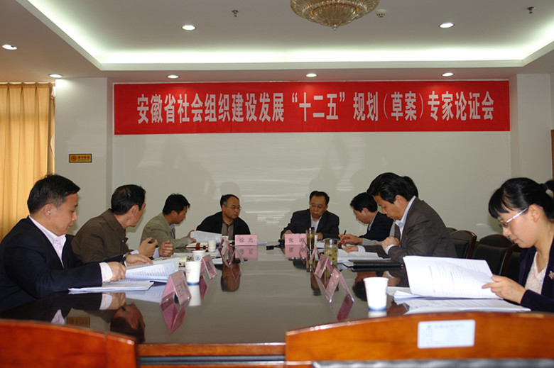 2012年4月18日下午,安徽省社会组织建设发展“十二五”规划(草案)专家论证会在民政厅召开,与会人员热烈讨论,积极发言,提出了许多宝贵意见。