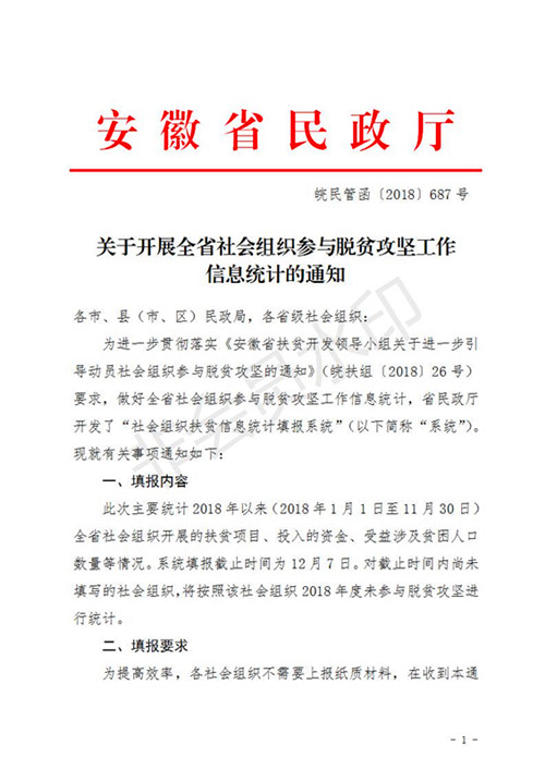 关于开展社会组织参与脱贫攻坚工作信息统计的通知