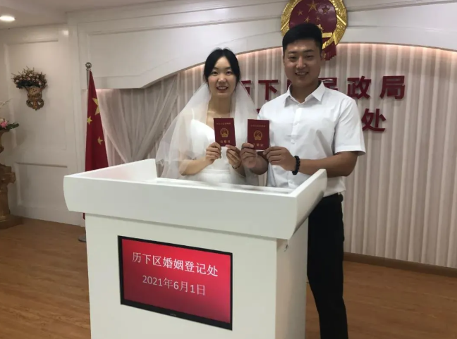 2021Äê6ÔÂ1ÈÕÔçÉÏ£¬Ìì½òÊл§¼®µÄÁõÏÈÉúºÍºÓ±±Ê¡ÇػʵºÊл§¼®µÄÑîŮʿ£¬ÔÚɽ¶«Ê¡¼ÃÄÏÊÐÀúÏÂÇø»éÒöµÇ¼Ç´¦Áìµ½ÁË¡°¿çʡͨ°ì¡±½á»éÖ¤¡£ÕâÊÇ»éÒöµÇ¼Ç¡°¿çʡͨ°ì¡±ÊԵ㹤×÷Õýʽʵʩºó£¬È«¹ú°ä·¢µÄµÚÒ»ÕÅ¡°¿çʡͨ°ì¡±½á»éÖ¤¡£ÖйúÉç»á±¨¼ÇÕß ÖÜȽȽÉã