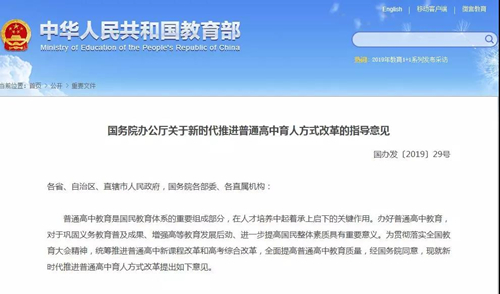 6ÔÂ19ÈÕ£¬¹úÎñÔº°ì¹«Ìü·¢²¼¡¶¹ØÓÚÐÂʱ´úÍÆ½øÆÕͨ¸ßÖÐÓýÈË·½Ê½¸Ä¸ïµÄÖ¸µ¼Òâ¼û¡·Ìá³ö£¬½øÒ»²½½¡È«·ÖÀ࿼ÊÔ¡¢×ÛºÏÆÀ¼Û¡¢¶àԪ¼ȡµÄ¸ßУÕÐÉú»úÖÆ¡£×ÛºÏËØÖÊÆÀ¼Û½«×÷Ϊ¸ßУÕÐÉú¼ȡµÄÖØÒª²Î¿¼¡£
