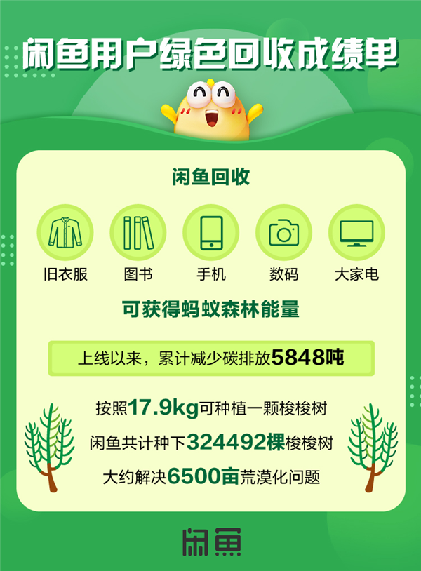 Ŀǰ£¬ÏÐÓãÒÑÖ§³Ö57Àà¿É»ØÊÕÎ°üÀ¨ÊÖ»ú¡¢ÊýÂë¡¢¼Òµç¡¢ÀÖÆ÷¡¢Í¼Êé¡¢ÉÝ³ÞÆ·¡¢¾ÉÒ¡¢¾ÉЬ¡¢°ü°ü¡¢ÐéÄ⿨ȯµÈµÈ£¬²»½ö¿ÉÒÔÃâ·ÑÉÏÃÅ»ØÊÕ£¬Ö¥Âé·Ö600·Ö¼°ÒÔÉÏ£¬»¹¿ÉÒÔÏíÊÜ×î¸ß2000ÔªµÄÐÅÓÃÔ¤¸¶¡£×ÔÏÐÓã»ØÊÕÉÏÏßÒÔÀ´£¬ÒÑÀۼƼõÉÙ̼ÅÅ·Å5848¶Ö£¬°´ÕÕ17.9kg¿ÉÒÔÖÖÖ²Ò»¿ÃËóËóÊ÷À´¿´£¬ÏÐÓãÒѾÖÖϳ¬¹ý32Íò¿ÃËóËóÊ÷£¬½â¾öÁ˳¬¹ý6500͵ĻÄÄ®ÎÊÌâ¡£