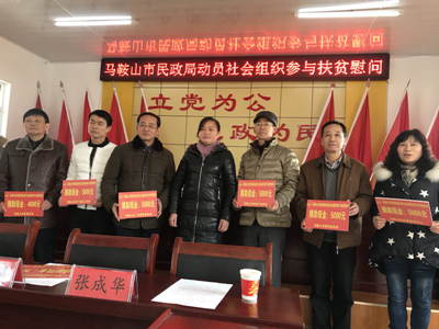 积极贯彻落实马鞍山市《关于进一步动员社会组织参与扶贫开发的意见》,开展精准扶贫,助力打赢脱贫攻坚战。12月21日,马鞍山市民政局组织15家社会组织赴郑蒲港新区白桥镇红旗村开展对口扶贫活动并举行了现场捐赠仪式。现场捐赠68200元,通过支持红旗村开展劳务、生产和教育项目的方式开展扶贫工作。红旗村书记葛开云代表村集体接受了捐赠。