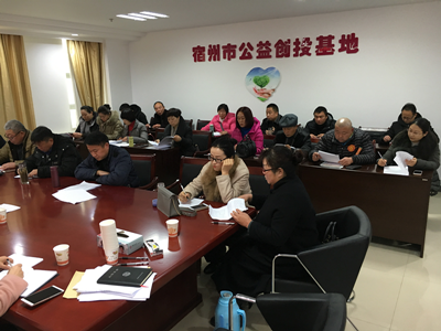 12月13日上午,宿州市民政局组织召开了2017年度公益创投评审会暨项目签约会。全市初评入选的28家社会组织的主要负责人参加了评审会。
