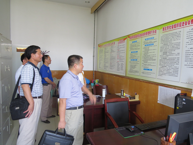 7月10日,铜陵市民政局副局长陈维华、民管局副调研员方宗祥等一行6人到淮北考察社会组织建设管理与改革创新工作。市民政局副局长贾超、市民管局局长朱世凯、以及市社会组织促进会相关负责同志陪同考察。