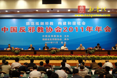 佛教在线福建讯 由中国反邪教协会主办、福建省反邪教协会承办,以“防范抵御邪教,构建和谐社会”为主题的中国反邪教协会2011年年会,于2011年11月8日在福建省福州市召开。中国佛教协会副会长、中国反邪教协会副理事长、闽南佛学院院长圣辉法师一行出席会议。