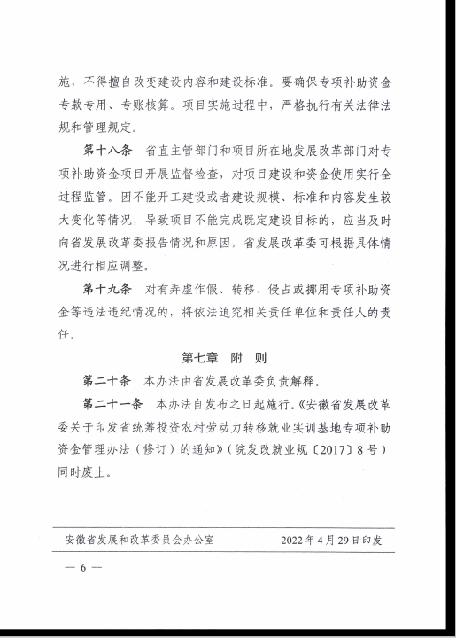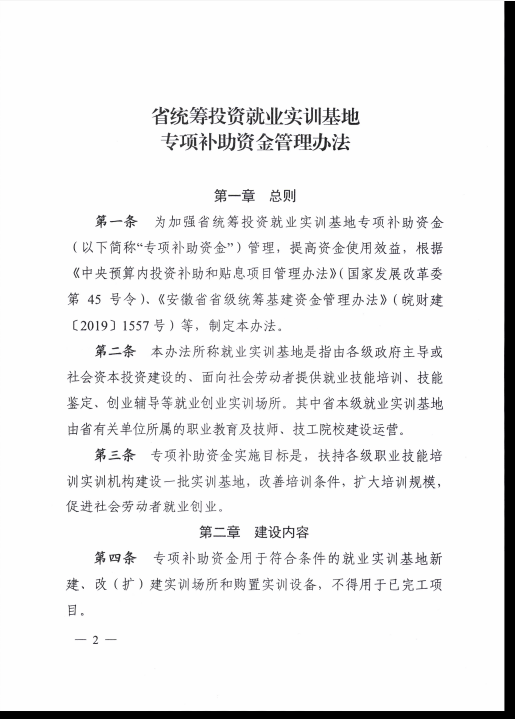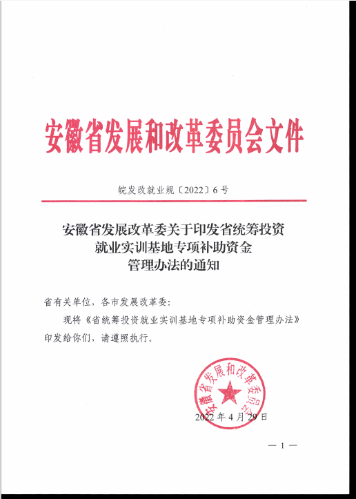 安徽省发展改革委关于印发省统筹投资就业实训基地专项补助资金管理办法的通知