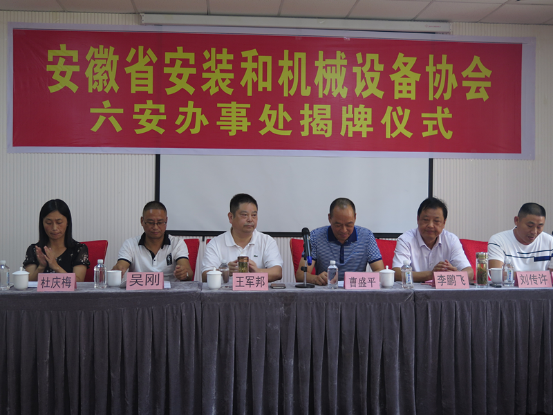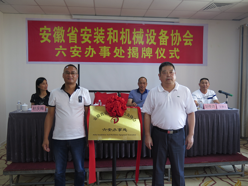 2018年9月5日,协会会长王军邦、副会长李鹏飞、秘书长杜庆梅等一行参加了安徽省安装和机械设备协会六安办事处揭牌仪式暨交流会议,标志着六安办事处正式成立。这是安徽省安装和机械设备协会在全省范围内成立的第一家办事处。
