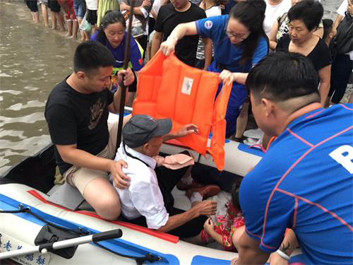 2018年8月18日,受“温比亚”台风强降水影响,宿州四县一区各地内涝严重,各地出现了不同程度的洪涝灾害,受困群众较多。宿州蓝天队员迅速就近赶往各地内涝较严重的路段,帮助转移受困车辆和受困市民,在灾情面前处处彰显蓝天大爱和蓝天人无私奉献的精神。