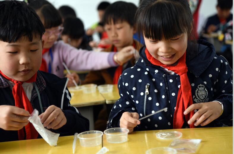 此次公开课的主题是“食盐中的智力因子”和“做个万磁王”。“食盐中的智力因子”从化学的角度出发为五年级的学生揭开科学的神秘面纱。为学生带来这堂课的志愿者柳艳炉老师是浙江大学化学工程硕士研究生,合肥多所小学科技辅导员,他认为以动手探究为中心的过程教育,才是培养优秀人才的正确方式。课程开始,老师通过一个盐贩子卖盐的小视频让学生思考假盐和真盐的区别,讲述碘对维持人体健康的作用,然后引出本次课题——用科学的方法检验食盐里是否含碘。老师在教学过程中循序渐进,从碘酒与淀粉神奇的相遇、探究淀粉遇碘盐能否变色、探究鉴别碘盐方法这三个问题入手,让学生独立设计方法、自主操作实验。最后,通过炒盐实验告诉学生在日常炒菜过程中最后放盐才能保证碘盐在身体中发挥作用,这种以生活中的科学现象为主题的实践教育,有利于激发学生的科学兴趣,培养学生的科学思维,提升学生的动手操作能力以及团队合作能力。