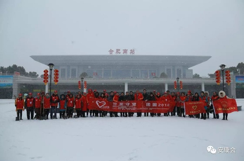 1月25日上午,漫天飞雪,合肥高铁南站综合楼里正在举行“邻里守望,公益安徽在行动,团圆2018”为主题的公益活动启动仪式。