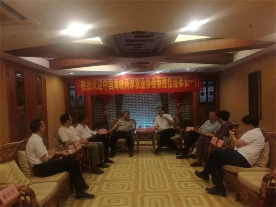 2017年9月16日,受安徽省台盟、安徽省台联会邀请,中国海峡两岸农业协会理事长蔡胜佳一行来我省访问、交流海峡两岸发展现代农业相关工作。安徽省台盟、安徽省台联会、安徽省现代农业协会、安徽省农学会、合肥市农学会等单位参加座谈交流。
