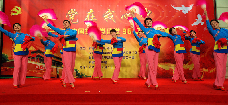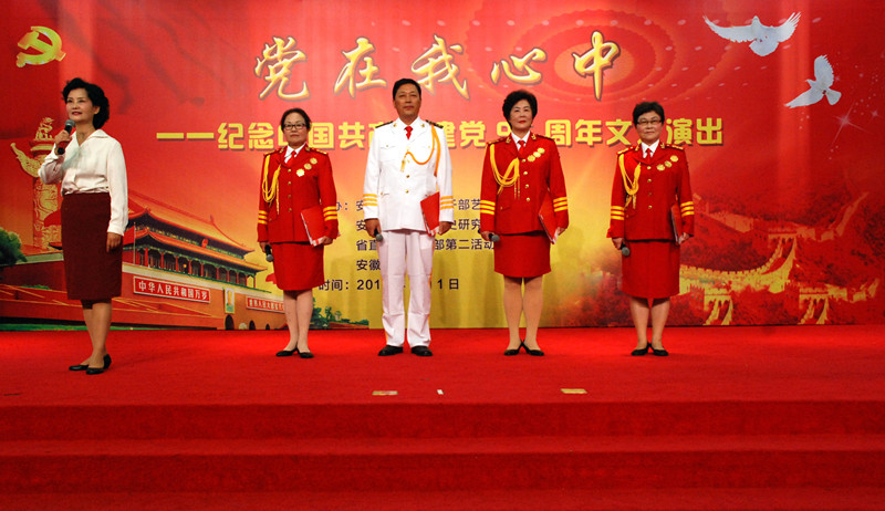 为了庆祝中国共产党成立96周年,表达退休老干部对党和祖国的深厚感情。7月1日下午,省新四军历史研究会铁军艺术团、省文化厅老干部艺术团、省直机关老干部第二活动室艺术团、省图书馆共同举办了以“党在我心中”为主题文艺汇演。新四军历史研究会副会长桂建平、副秘书长刘以顺、办公室主任李茂辉;省文化厅老干处处长刁觉班,省政府老干部第二活动室,省图书馆等领导及200多名观众观看了演出。