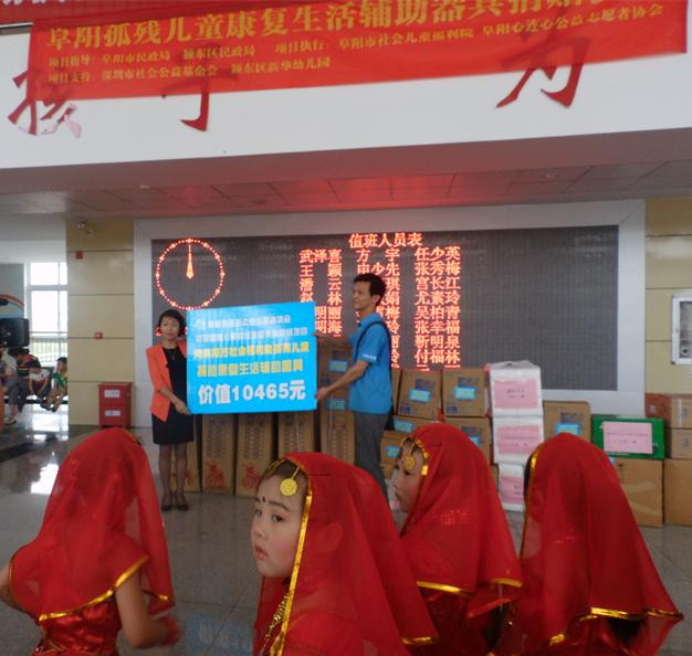 本次活动,阜阳心连心公益志愿者协会利用脑瘫儿童社区康复支持网络项目的优势资源,结合福利院孤残儿童的实际需求,在深圳市社会公益基金会的支持下,特地购置了全新轮椅5辆、儿童推车5辆、儿童学步车10辆、儿童坐便器10只,总价值1万余元。