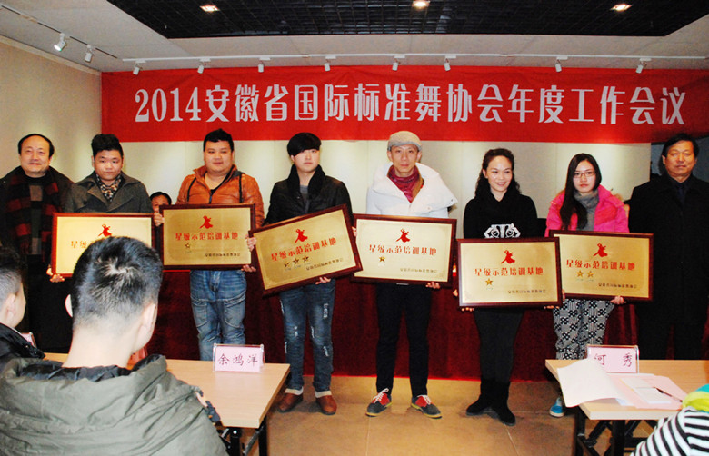 会上,分别对三星级示范培训基地:合肥市体育舞蹈学校、芜湖星星艺术培训中心、何秀舞蹈工作室,二星级示范培训基地:巢湖市体育舞蹈学校,一星级示范培训基地:蚌埠市拉丁舞培训中心、天长市轻舞飞扬国标舞培训学校进行了表彰。并表彰了7个优秀教学点:鸿媛舞蹈学校、祥之韵舞蹈学校、雅艺舞蹈学校、蚌埠蓝天拉丁舞培训中心、蚌埠倾城拉丁舞培训中心、黄山市程美玲工作室、定远县青少年活动中心。同时受表彰的还有朱仁翠、汪祥、余鸿洋等20名优秀教师,安徽艺术职业学院舞蹈系国标舞教研室作为年度特殊贡献单位也受到了表彰,大会还对参加2013 CBDF中国杯巡回赛总决赛的获奖选手进行了表彰奖励。(朱德存)