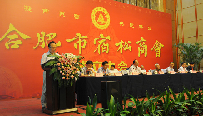 9月8日下午,经市民政局批准,合肥市宿松商会在世纪金源大酒店隆重召开了第一届会员大会暨成立大会,来自全市各行各业的150多名宿松籍企业代表参加了会议,市政协副主席许天锡等领导出席了会议。会上,通过了商会章程及会费收取办法,选举产生了商会第一届理事会、会长、常务副会长、副会长、秘书长。合肥市宿松商会成立后,将为会员企业提供政策、法律、财务、金融、投资、人力资源等咨询和服务,协助会员企业举办信息发布、产品推介、市场开拓等活动,加强在肥的宿松籍企业之间的交流与合作,为合肥、宿松两地经济和社会发展服务。