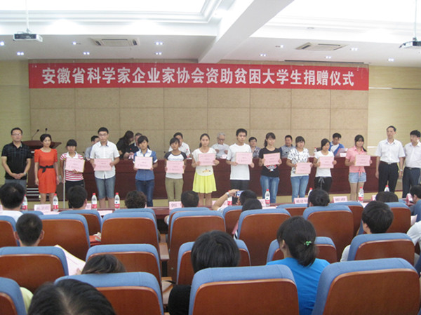 安徽省科学家企业家协会举办“资助贫困大学生公益活动”捐赠仪式