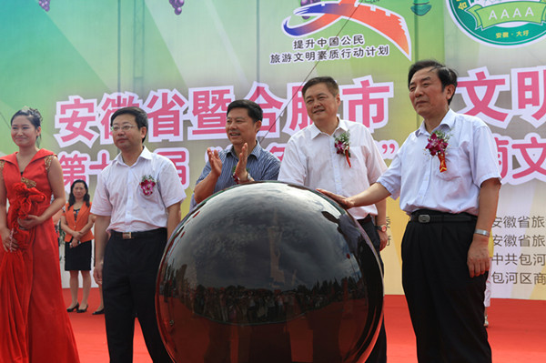 7月27日,由省旅游协会主办,合肥市旅游局、包河区政府承办,省旅行社协会、省旅游景区分会、合肥市旅游协会等协办的第十一届“绿色大圩”葡萄文化旅游节开幕。原省政协人资环委主任、省旅游协会会长高蔚青,省委宣传部副部长、省文明办主任贺懋燮,市委常委、宣传部长林存安,市委常委、副市长周善武等出席仪式并为“国家AAAA级景区”、“全国休闲渔业示范基地”、“大圩葡萄国家地理标识”揭牌。