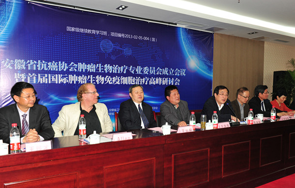 随后,首届国际肿瘤生物免疫细胞治疗技术高峰研讨会以“恶性肿瘤临床治疗与康复的新技术”应用为主题,聚焦国际抗癌前沿科技,深入探讨“生物免疫细胞治疗技术”在临床应用中的重要作用和前景,并请莅临现场的国外知名专家:国际免疫治疗技术专家Alex Chang博士、美国FDA细胞质量控制专家Allen博士围绕国际肿瘤生物免疫细胞治疗、生物免疫细胞质量安全控制、临床研究新进展作了专题报告。与会者纷纷表示:“专家讲座通过理论讲解和病例分析,让我们对最新的恶性肿瘤生物免疫细胞治疗技术的理论精髓和实用技术有了更深入的理解和认识,开阔了我们的视野,相信随着生物免疫细胞治疗技术在临床上的推广应用,一定能为安徽的肿瘤患者延长生命带来新的希望。”