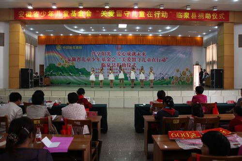 9月19日上午,临泉县在县委会议中心隆重举行了安徽省儿童少年基金会关爱留守儿童捐助仪式。出席捐助仪式的有省儿童少年基金会秘书长李晓黎,省妇联儿童部部长管少云,市政府副市长黄珍,市妇联主席张俊杰,市妇联儿童部部长刘卫军,县委副书记汤志,县委常委、副县长王海燕,县政协副主席刘景,文王集团公司董事长刘素敏,县妇联主席刘建梅。