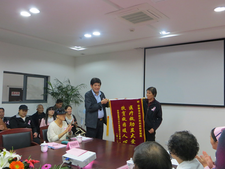 会上,张亚平副局长对得到救助康复的患者表示了慰问,同时要求安徽济民肿瘤医院要按照时间进度和实施方案完成中央资助项目,并代表省民间组织管理局接受了救助患者代表的感谢信和锦旗。