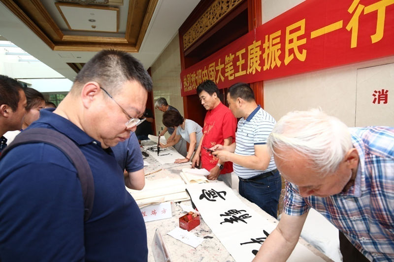 著名书法家“大笔王”康振民老师和倪萍、邢国政、程端方、常立文四位书法家老师为参会嘉宾和会员现场书写、馈赠墨宝