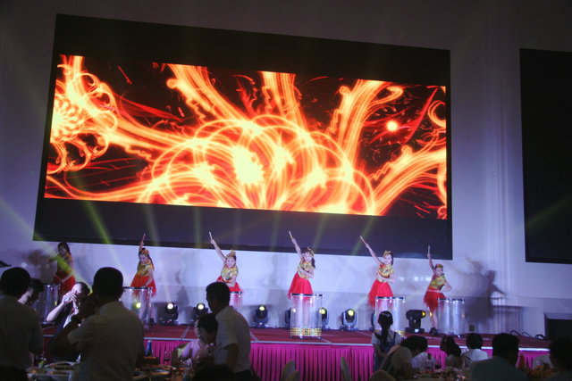 随后,大会进入文艺节目表演阶段,参展企业派出了实力派代表歌舞表演再次渲染了喜庆的气氛。中间穿插的三轮抽奖活动把晚会推向了高潮,在一等奖颁奖之后晚会结束。(胡亚鼎)