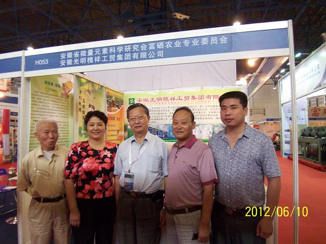 首届中国国际(北京)富硒食品推广交易会于2012年6月9~11日在北京中国国际展览中心举行。本次会展共开设5个展馆近500个标准展位展示了约2千种富硒农产品和保健食品。安徽省微量元素科学研究会富硒农业专业委员会组织团体会员单位华信生物药业药业股份有限公司、安徽硒科生物科技有限公司、安徽御宝营养保健品有限公司、安徽光明槐祥工贸集团有限公司四家单位参加了本次富硒食品推广交易会。