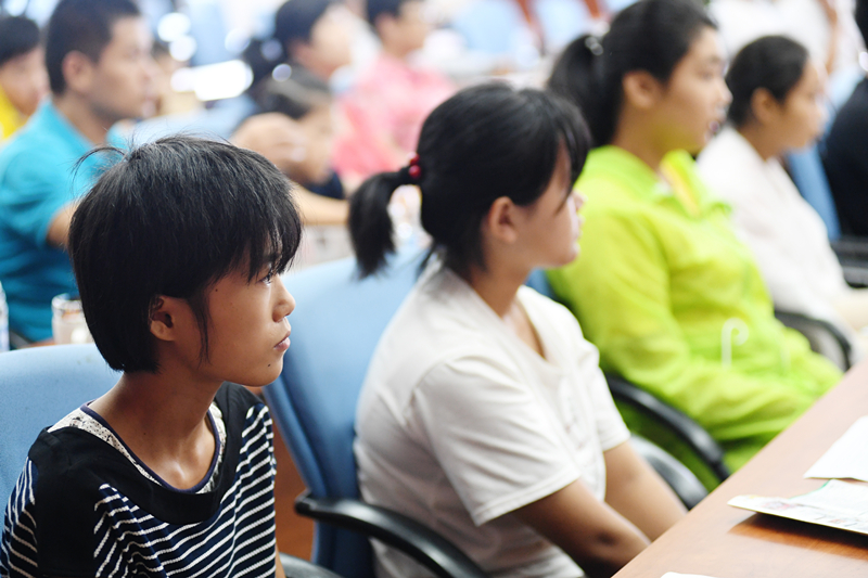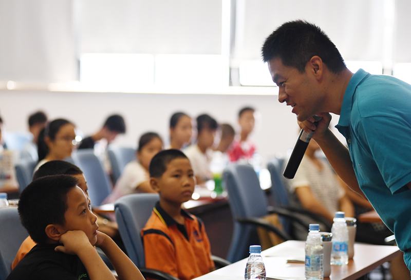 9时许,合肥七中的语文高级教师张徽举和合肥十中物理教师王贤乾分别给孩子们上了一堂“人生励志课”和“学习方法课”,并与孩子们进行了互动,让现场的同学们感触良多、受益匪浅。“有很多学习方法,以前我们都不知道,这次听后收获很大。而且,明白了遇见困难,不要退缩,要有一种好的心态。”六安市金安区淠东中学刘绪荣同学说。
