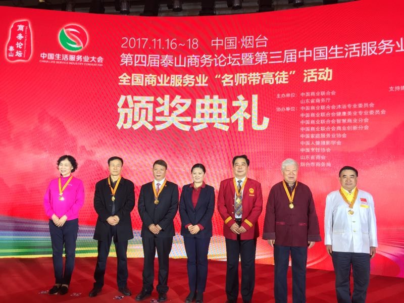 会议举行了第三届中国生活服务业年度人物和全国商业服务业“名师带高徒”活动颁奖典礼。第三届中国生活服务业年度人物评选由中国商业联合会主办,对中国生活服务业涌现出的优秀企业家和行业协会领导者予以表彰,旨在向社会集中展现行业领军人物的骄人风采,以表彰他们勇于开拓、敢于创新的时代精神,牢记企业使命、自觉践行社会责任的高尚品质,对行业转型发展所做出的重大贡献。全国商业服务业“名师带高徒”活动由中国商业联合会、中国财贸轻纺烟草工会联合开展,目的是为了深入贯彻落实党中央、国务院关于人才培养的精神,进一步推进“人才强国”战略的实施,弘扬工匠精神和中华传统技艺,继承和挖掘中华非物质文化遗产,加快培养高技能、高素质的商业服务业带头人队伍,促进职工队伍整体素质提高。