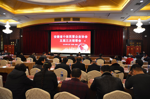 12月18日,安徽省个体民营企业协会五届理事会第三次会议在合肥召开。省个民协会副会长兼法人代表宋少东主持会议,省个民协会秘书长苗春芳作工作报告,五届理事会全体理事、各市和省直管县个民协会会长、秘书长参加了会议。