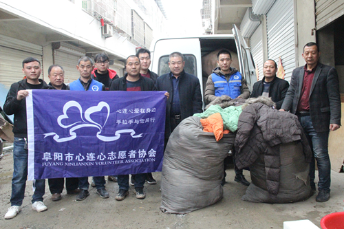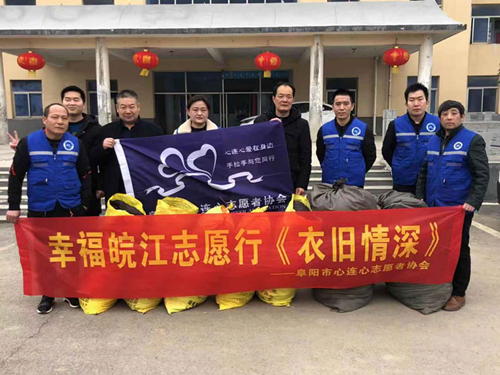 2019年2月26日,阜阳市心连心志愿者协会开展“衣旧情深扶贫帮困”志愿服务活动,活动已经进入安徽品牌项目《幸福皖江志愿行》中。此次活动在阜阳疝病专科医院志愿者服务队的协助下,走进颍东区新乌江镇。