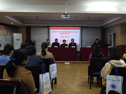 3月24日上午,由安徽省现代心理学研究院主办的为期3天的《安徽省中小学心理健康教育教师团体辅导技能提升培训班》完满结束并举行了隆重的结业典礼!结业典礼由省心理学研究院副院长庞良兵主持,张平教授、程义平主任、朱可然班长、孙莉班长及参训的阜阳市颍东区教育系统49名中小学心理健康教育教师出席了典礼。