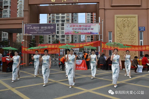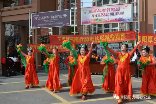 为认真学习宣传贯彻党的十九大精神,丰富市民的精神文化生活,3月24日下午,一场精彩的文艺演出在阜阳市鼓楼办白衣桥社区广场上演,为“踏上新征程追梦新生活”阜阳阳光爱心公益协会文艺工作者进社区活动拉开序幕。