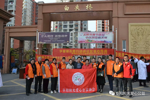 本次活动由阜阳阳光爱心公益协会、颍州区鼓楼办白衣桥社区共同举办,得到了阜阳阳光艺术团,阜阳市老年大学,阜阳市颍东区老年大学各位文艺爱好者们的热情支持和演出,在演出现场,朱誉六堂中医理疗志愿者服务队,阜阳厚生中医肝胆医院志愿服务队为社区居民提供了免费检查与服务!